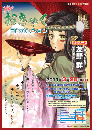 高知市文化プラザかるぽーとで開催されるTRPGコンベンション「おきゃくコン」のポスターイラストを、高知インディーズマガジン本誌でも活躍中の「伊勢」さんが描きました。