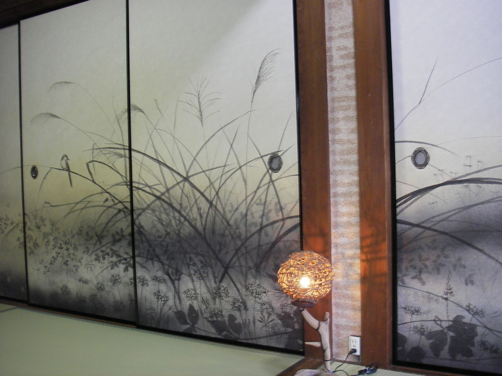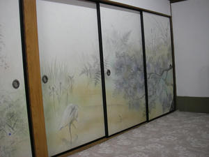 春から冬の草木や動物昆虫達が描かれた総枚数14面の襖絵。